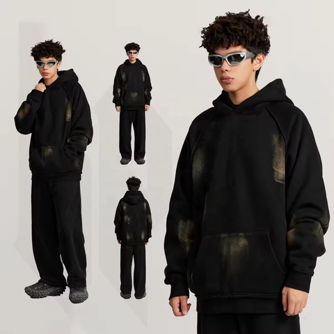 Nhà Sản Xuất Quần Áo Tùy Chỉnh Cotton Pha Trộn Axit Rửa Rửa Đau Khổ Áo Lông Cừu Lót Phong Cách Retro Hoodies Cho Hợp Thời Trang dạo phố