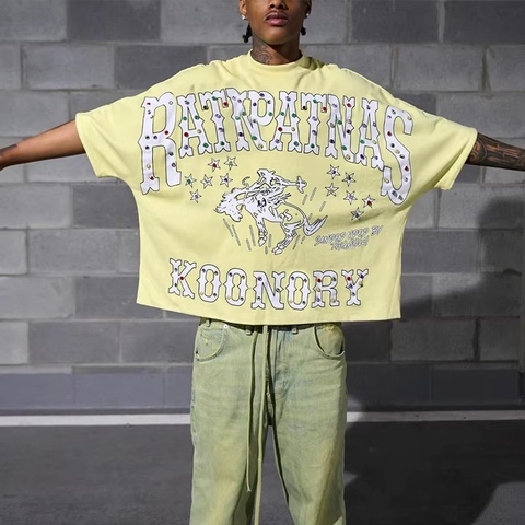 Tùy chỉnh Rhinestone tôn tạo Boxy T-Shirt cho nam giới 100% cotton hip hop phong cách với in đậm đồ họa Chất lượng cao nhà sản xuất