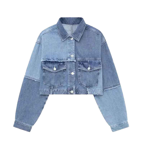 Tùy Chỉnh Đau Khổ Ripped Chắp Vá Ngắn Denim Áo Khoác Cho Phụ Nữ Duy Nhất Nút Đóng Cửa Dệt Dệt Hoàn Thành Cho Mùa Thu Mùa Xuân